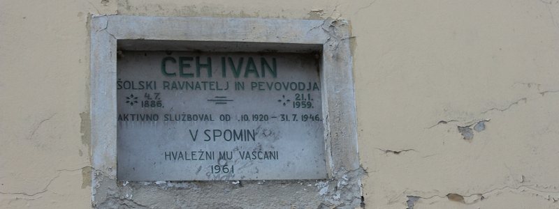 Spominsko ploščo so leta 1961 vgradili na pročelje stare šolske zgradbe, ki se je v tistem času imenovala OŠ Franceta Belšaka Bučkovci. Na spominski plošči je zapis: »Čeh Ivan Šolski ravnatelj in pevovodja 4. 7. 1886–21 .1. 1959 Aktivno služboval od 10. 1920–31.7. 1946 V spomin hvaležni mu vaščani 1961.« Ivan Čeh Ivan Čeh (1886–1959)