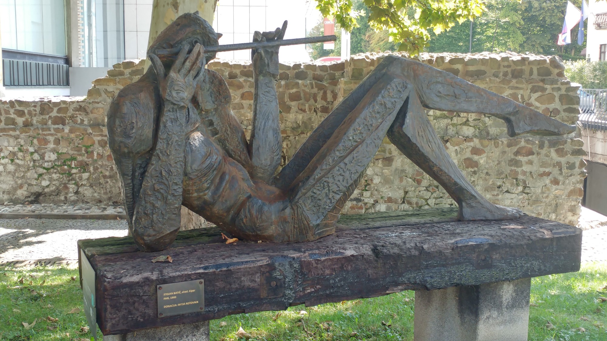 Skulpturo, ki je spadala v dediščino dr. Zorana Kržišnika, je generalnemu direktorju Cankarjevega Doma Mitji Rotovniku podarila ena od dedinj Kržišnikove zapuščine. Rotovnik je bil namreč njegov dolgoletni sodelavec in prijatelj. V znamenju njunega tesnega sodelovanja pri ustanavljanju in pozneje tudi oblikovanju likovnega programa Cankarjevega doma je Mitja Rotovnik predlagal, da dobi Pan prostor na trati ob Cankarjevem domu.